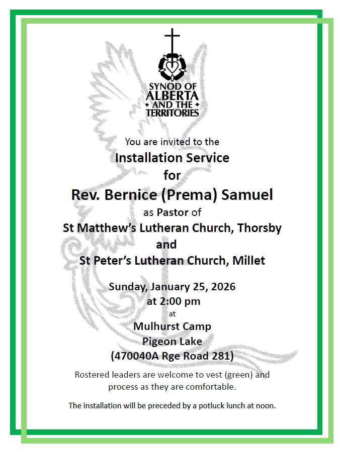 E-transfers to the Synod should be linked to abtfinance@elcic.ca. Pertinent details may be included in the message line.