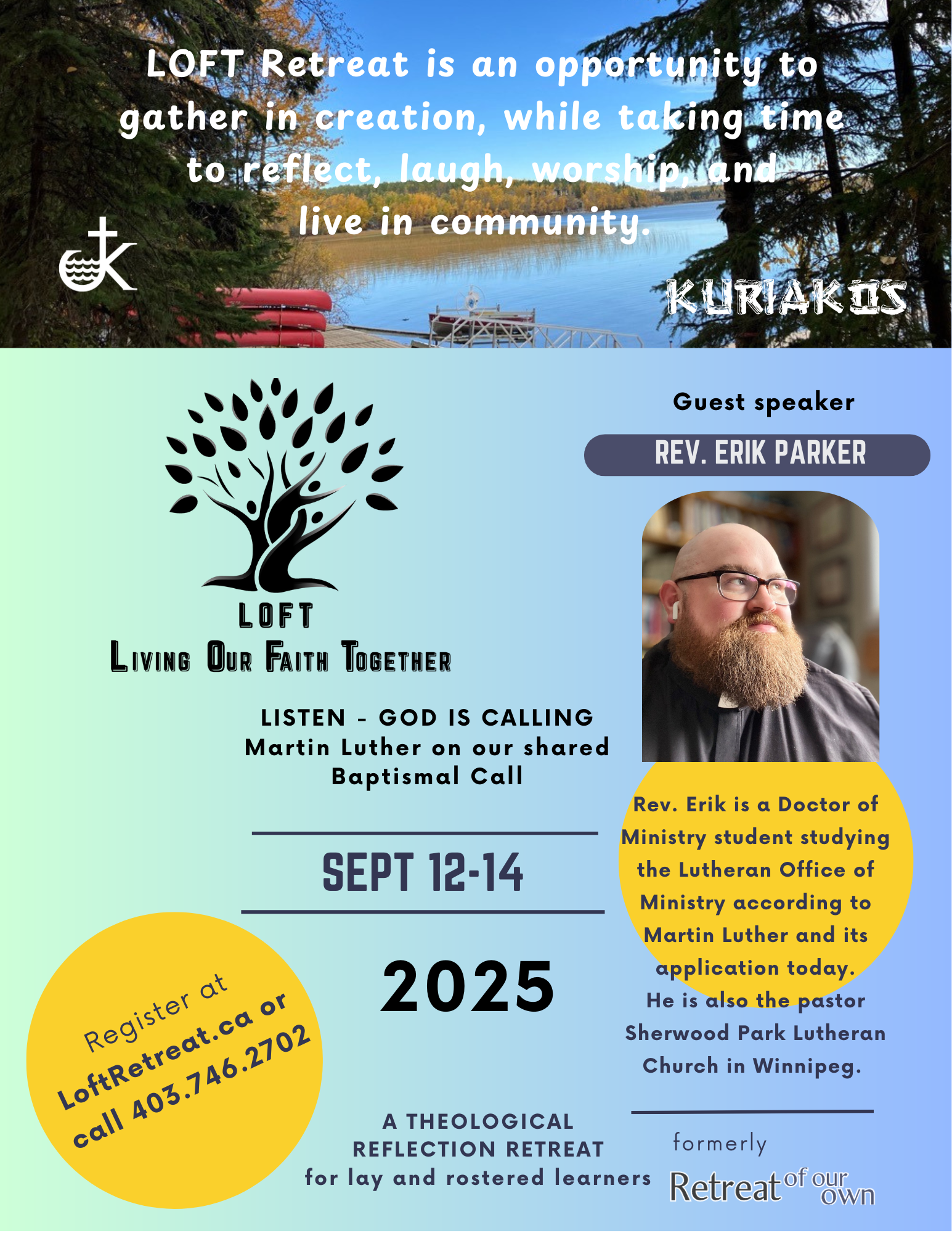 2023-September 15-17 at Kuriakos on Sylvan Lake. Rev. Dr. Matt Anderson (ELCIC – author, theology professor and part-time Director of Camino Nova Scotia) – Pairings: The Bible and Booze